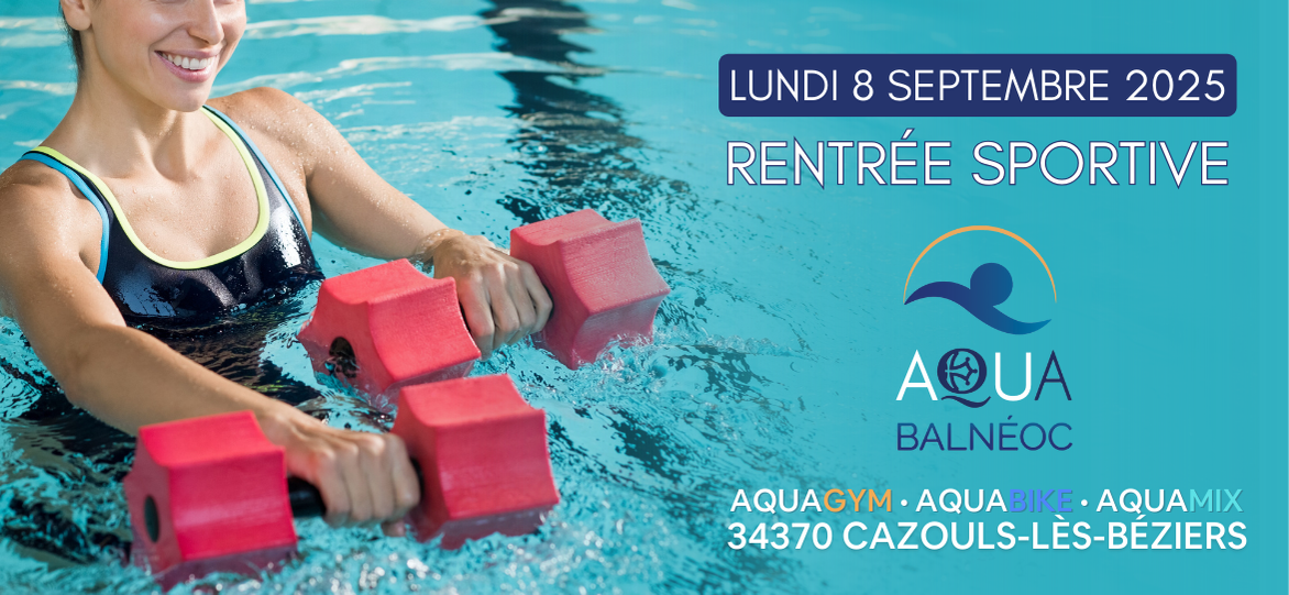 Aqua Balnéoc vous propose des cours d’aquabiking, aquagym et aquamix coachés en bassin collectif chauffé proche de Béziers.